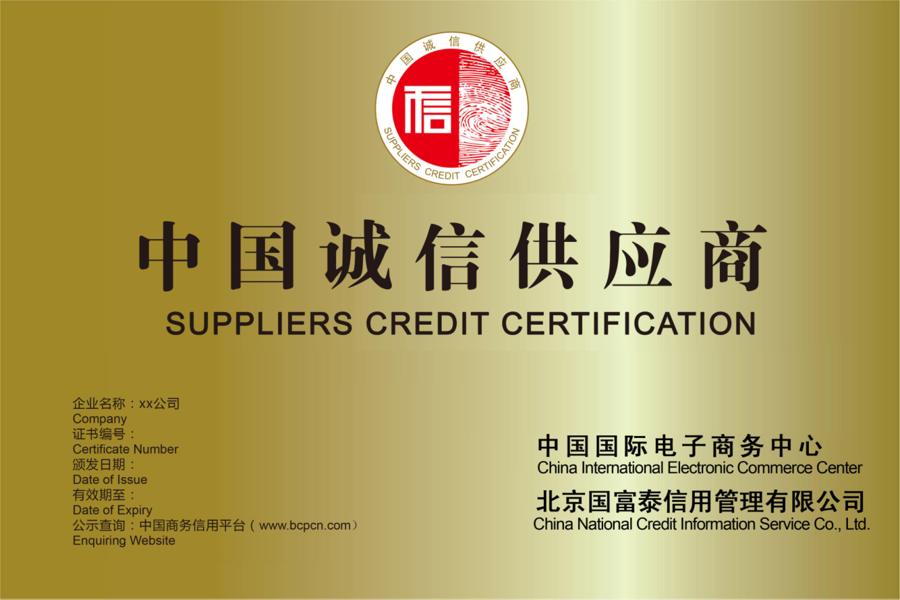 中国诚信供应商认证是对实体企业的信用信息进行核实查证,并在中国商务 信用平台(www.bcpcn.com)上发布的过程,是由第三方机构给予企业真实性、 合法性的有力证明,有利于提升企业市场竞争力和品牌美誉度。商务信息包括注 册信息、质量认证信息、资质信息、联系人信息等。有效期为一年,从企业通过 认证之日起开始计算。